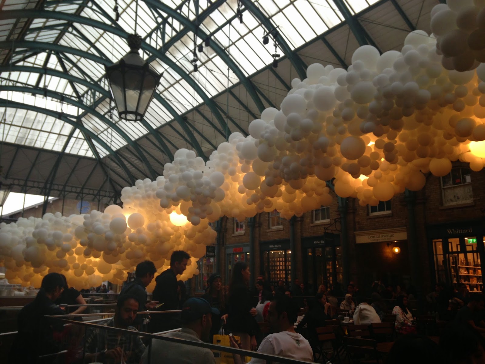 Dal 27 agosto al 27 settembre 2015 un’invasione di palloncini bianchi crea un’atmosfera da fiaba all’interno di Covent Garden a Londra.