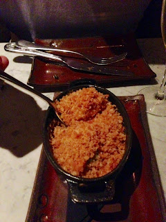 L’altro piatto era “Pollock”, polpette di aragosta che si presentano tipo sformato in una mini pirofila bollente. Le polpette si trovano sotto uno strato di pan grattato, adagiate su una salsina saporita. E’ un piatto particolare, forse l’avrei preferito senza la salsetta che per i miei gusti era un po’ troppo sapida.