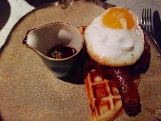 Ed eccoci arrivati alla portata principale: il “Duck and Waffle”, si tratta di una combinazione di sapori ardita e riuscitissima. Nel piatto trovate una coscia d’anatra croccante adagiata su un waffle, ricoperta da un uovo fritto e a parte lo sciroppo d’acero. Versate lo sciroppo sul piatto e buon appetito, il gusto è incredibile.