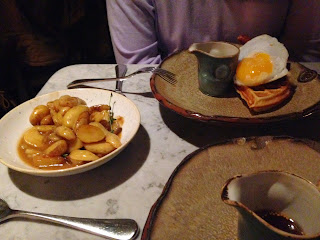 Ed eccoci arrivati alla portata principale: il “Duck and Waffle”, si tratta di una combinazione di sapori ardita e riuscitissima. Nel piatto trovate una coscia d’anatra croccante adagiata su un waffle, ricoperta da un uovo fritto e a parte lo sciroppo d’acero. Versate lo sciroppo sul piatto e buon appetito, il gusto è incredibile.