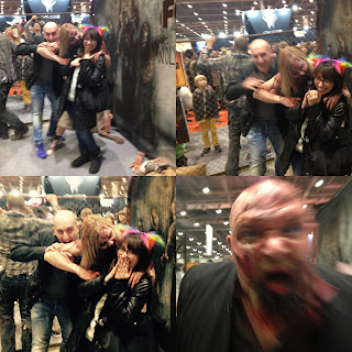 I really loved the stand of The Walking Dead: with “beautiful” zombies locked in a fen trying to bite the audience, great idea!