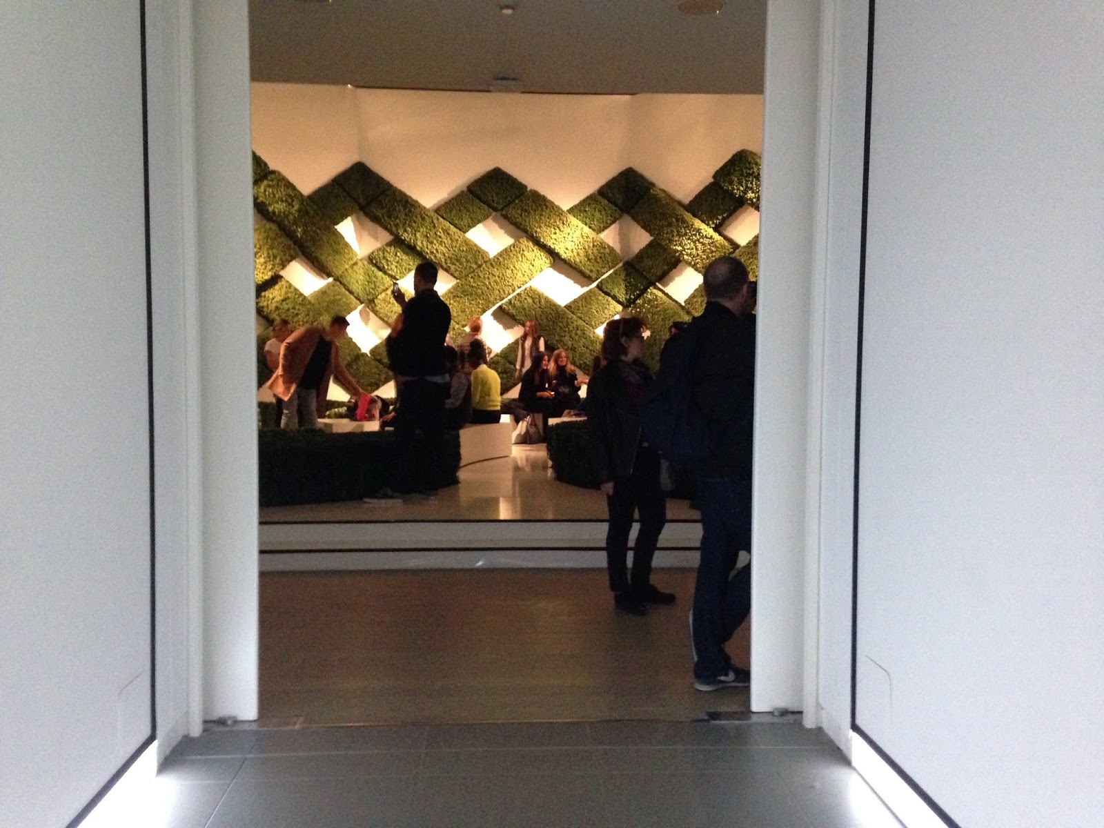 Altro scenario, adesso sono in un giardino in stile francese. Un labirinto fatto di muschio si staglia sulle pareti bianche, c’è un fresco profumo d’erba che invita al relax. Le siepi intrecciate ricordano il disegno che Chanel aveva visto da bambina in orfanotrofio e che le ispirerà il celebre marchio con le C incrociate e decori per le sue creazioni.
