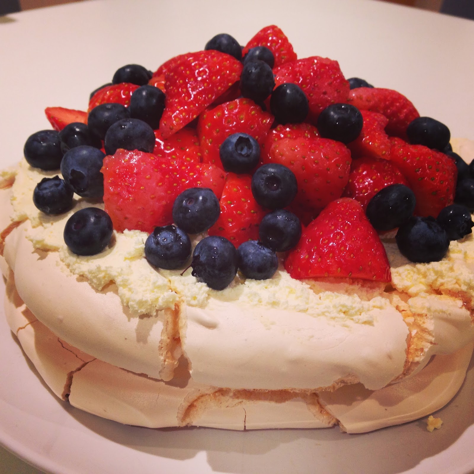 My lovely Pavlova! I really like this cake: a crisp meringue with a marshmallow heart, gorgeousness whipped cream and fresh fruit. It’s perfect, romantic and simple to make.