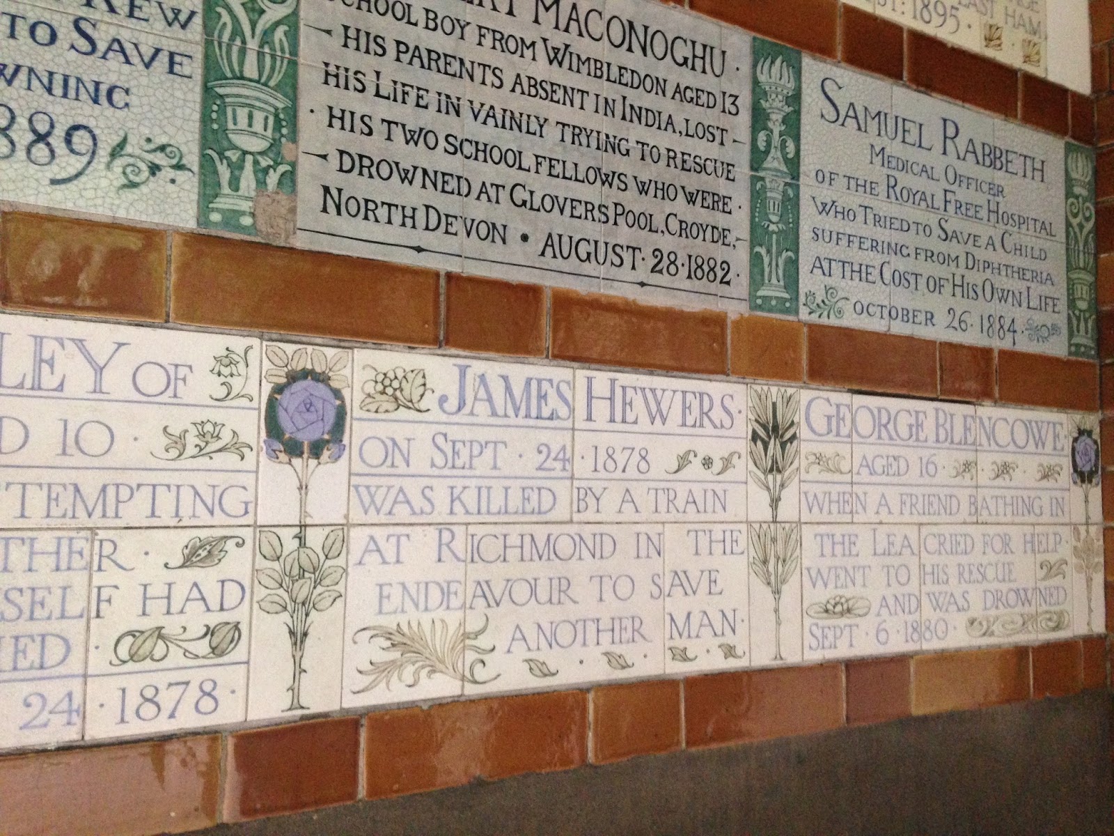 Il memoriale è formato da piastrelle in ceramica, dipinte a mano, che ricordano questi atti di estremo coraggio.