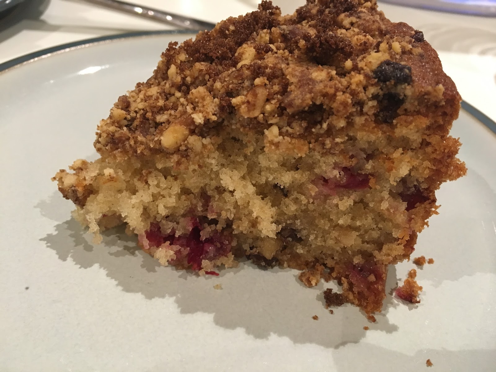 Trasferire il composto nello stampo per la torta, livellare e cospargere la superficie con il crumble. Infine cospargere con un cucchiaio extra di zucchero di canna.