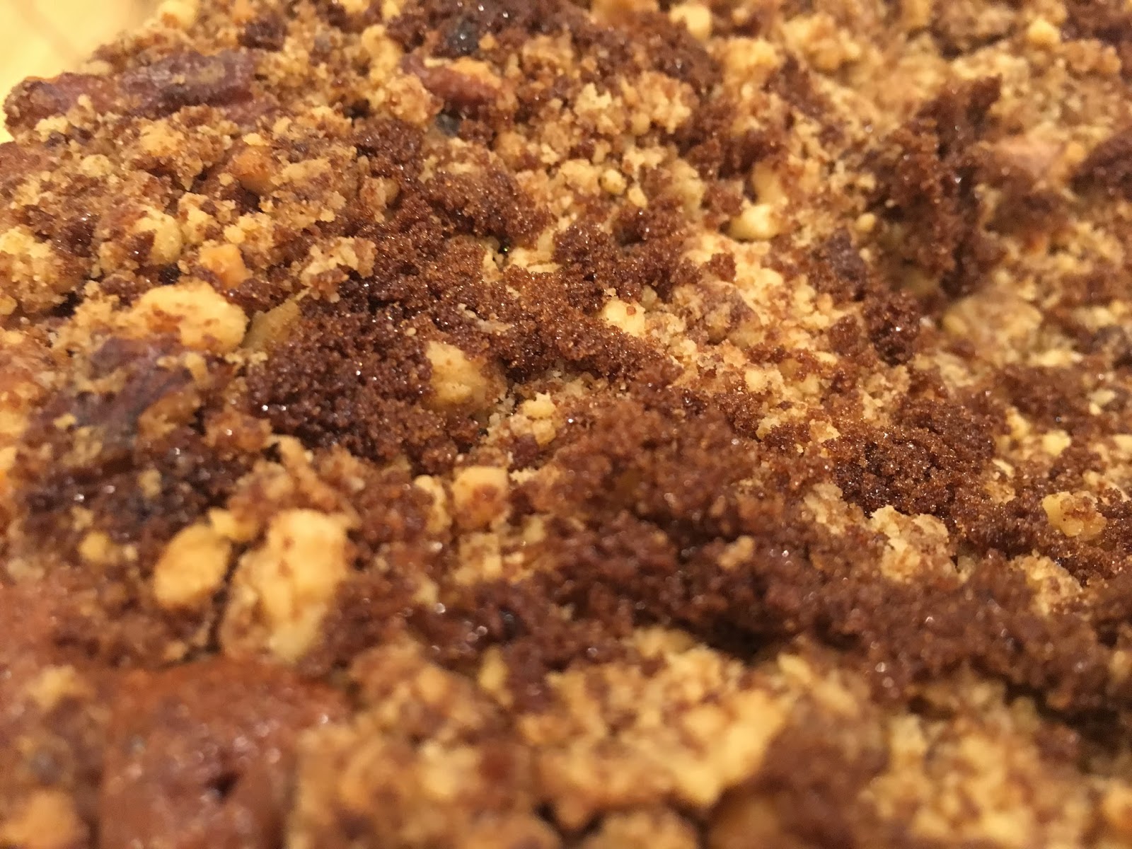 Per prima cosa preparare il crumble (che è la copertura croccante). In una terrina mettere la farina e il burro, mescolare formando un composto sabbioso poi aggiungere lo zucchero e le noci continuando a mescolare.