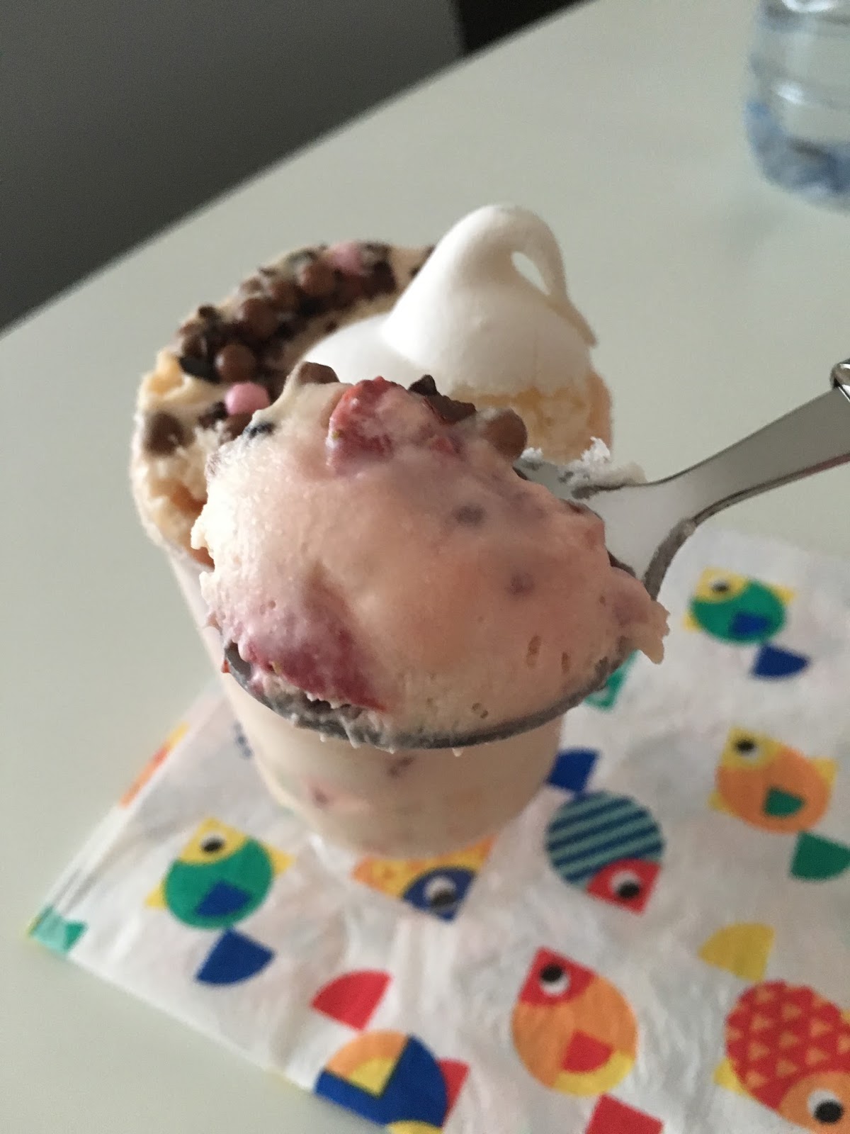 Mescolare i piccoli pezzi di meringa alla crema e poi aggiungere le fragole. Mettere il composto in un sac à poche e riempire dei bicchierini. Guarnire con cioccolato, purea di fragole (se vi piace, io la evito perché poi il tutto mi sembra troppo dolce) e una meringa.