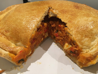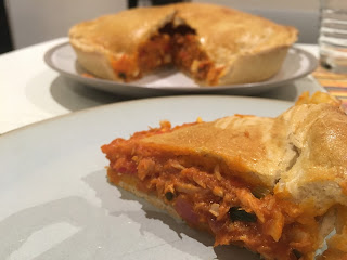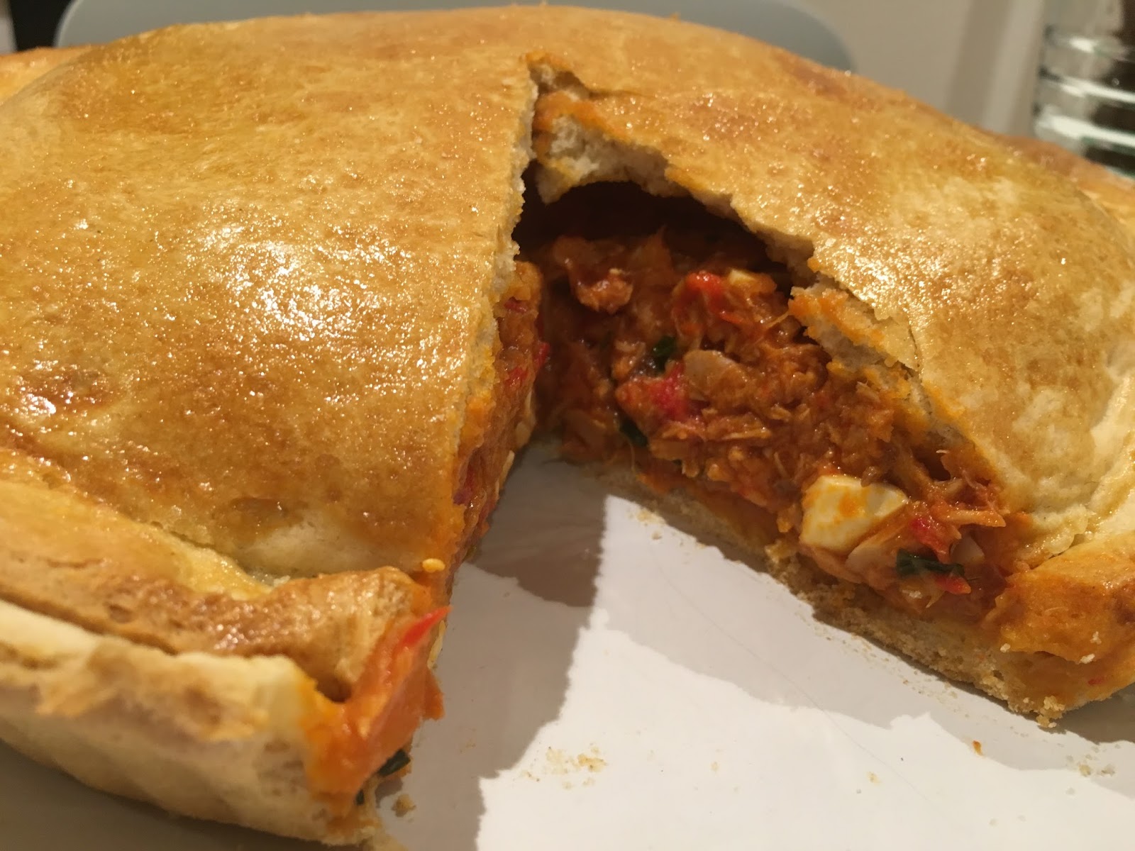 Dicevo di averla assaggiata ieri (ehm ne ho mangiato un quarto, per quanto è buona), il sapore è davvero incredibile e credo sia perfetta per accompagnare un aperitivo o come torta da portare in gita o sulla tavola di una cena fredda. Eh sì perché risulta deliziosa sia calda che fredda. La pasta sembra dura a prima vista, il “guscio” è molto compatto, ma in verità assaggiandola vi accorgerete che è friabile tipo quella della pizza, poi si impregna di sughetto e … un pezzo tira l’altro 😉