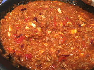 4 peperoni rossi tagliati a cubetti ( io li ho incisi e passati al microonde per 20 min. alla massima potenza, poi ho tolto la buccia e i semini, li ho tagliati a striscioline e poi a cubetti)