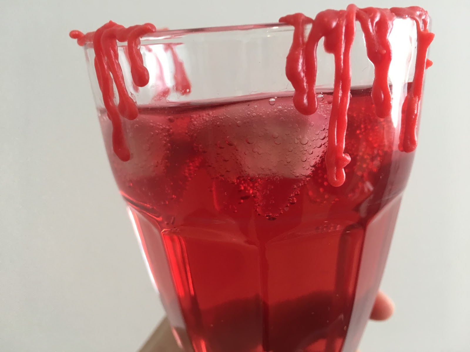 Unite le due bibite in una caraffa, decorare bicchieri e caraffa con la glassa rossa in modo da simulare rivoli di sangue. Quando servite il drink, non vi dimenticate di inserire nel bicchiere due o tre dentiere di vampiro all’insaputa del vostro ospite, gli farete una bella sorpresina 😉