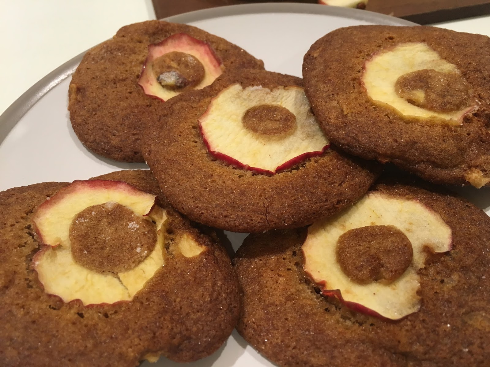 I miei biscotti hanno un colore sul marroncino, dovuto alla melassa, non sono super luccicanti come quelli del film perché bisognerebbe cospargerli con molto zucchero bianco e preferisco evitare, ma il sapore è ottimo!! Sono riccamente speziati, ricordano tantissimo il pan di zenzero ed emanano un profumino meraviglioso. Inoltre nell’impasto sono presenti pezzettini di mela e ve l’ho detto che l’autunno per me è il mese consacrato alle ricette a base di mela? Mi sa di sì, quindi vi ammorberò ancora per un po’ con ricette zeppe del frutto del momento.