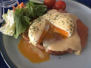 Potete decidere di mangiare solo cose leggere: magari ordinate un’insalata, dei centrifugati, zuppe, yogurt e cereali oppure potete optare per una colazione inglese accompagnata da frutta e succhi, ma se siete in vena di sgarro -e questo è quello che amo fare con grande gioia- potreste scegliere ciò che c’è di più goloso sul menù. Di solito si tratta di French toast, pancakes con panna, gelato e frutta, cioccolata calda, prosecco, bacon e sciroppo d’acero, Bloody Mary (why not?) e le mie preferite uova alla Benedict!