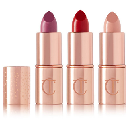 Questo trio di mini – rossetti, è altamente concupito dalla sottoscritta che (come sa bene chi la segue su Youtube), va matta per la formulazione dei lipstick di Charlotte Tilbury. Sono cremosi, profumati, i colori, bellissimi, permangono per lungo tempo e poi hanno la caratteristica di non seccare assolutamente le labbra. Queste tre nuances si possono utilizzare anche facendo dei mix tra di loro e creando così colori nuovi. La mini size è inoltre perfetta per borsette e viaggi.