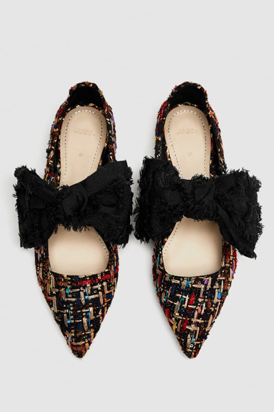 Pare che la tendenza del momento voglia ai nostri piedi fiocchi giganteschi e un po’ afflosciati. Di cosa sto blaterando? Ma di scarpe ovviamente. E sono quelle che ho adocchiato in diversi negozi: ballerine a punta, ornate da fiocchi che vanno a stringere la caviglia o cingono il dorso del piede. A dire il vero mi sembrano interessanti da abbinare sia ad un look più ricercato che ad un outfit casual oppure romantico. Mi danno l’impressione di essere comode, ma al momento sono ancora indecisa sull’acquisto.
