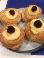 The zeppola is prepared with choux pastry and filled with custard. Ah and don’t forget the sour cherry and icing sugar to garnish. This dessert can be fried or cooked in the oven. Personally I prefer the baked version and my recipe is quite infallible.