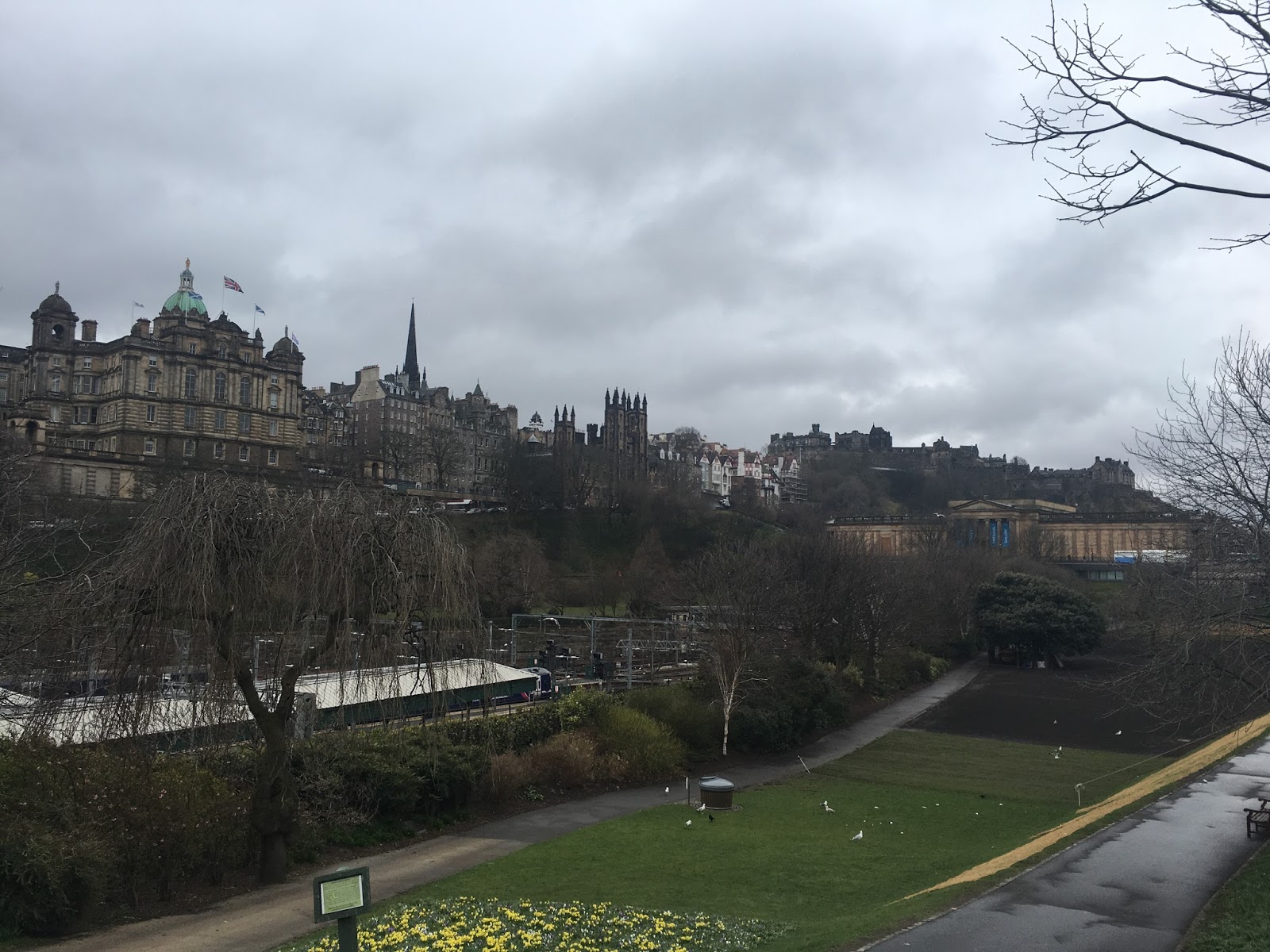 Ad Edinburgh il tempo è sempre piuttosto freschetto e mutevole, quindi partite ben equipaggiati. La mia vacanza pasquale è stata all’insegna della pioggia, del vento e con una spruzzatina di neve. Ma la domenica, inaspettatamente, è spuntato il sole e sembrava primavera! Comunque il brutto tempo non mi ha mai fermato e, grazie alla mia giacca imbottita e impermeabile con cappuccio, ho girato dappertutto senza farmi troppi problemi e soprattutto senza aver bisogno dell’ombrello (oggetto inutile perché il vento se lo porta via).