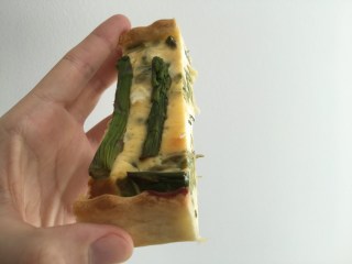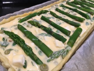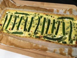 Una volta pronta, disponetela sul piano da lavoro e col matterello create una sfoglia di mezzo centimetro di spessore. Mettere la sfoglia nella tortiera e riempitela col ripieno. Se vi avanzano un po’ di asparagi lessi, usateli per decorare la superficie della torta.