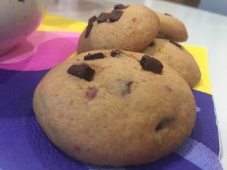 Oggi voglio suggerirvi i biscotti morbidi con pepite di cioccolato e zuccherini colorati (a me gli zuccherini fanno allegria, ma se non vi interessano i colori dell’arcobaleno che si sprigionano nella pasta, potete ometterli tranquillamente). Questi biscotti sono ideali per l’inzuppo, quindi affrontateli muniti di un bel bicchiere di latte e il gioco è fatto!
