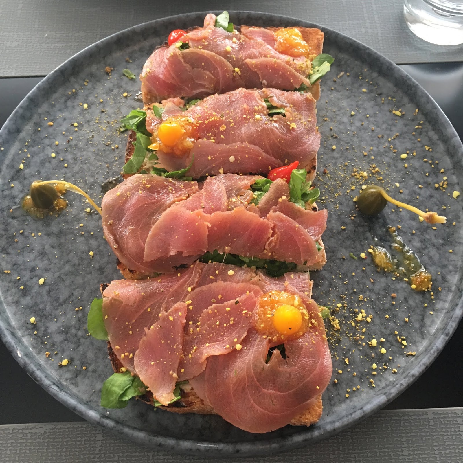 Ho provato un ottimo Spritz, un tonno all’arancia squisito e una buona insalata di mare. A fine pasto un dolce tipico a base di formaggio e miele, per niente stucchevole che mi ha lasciato un ricordo delicato.