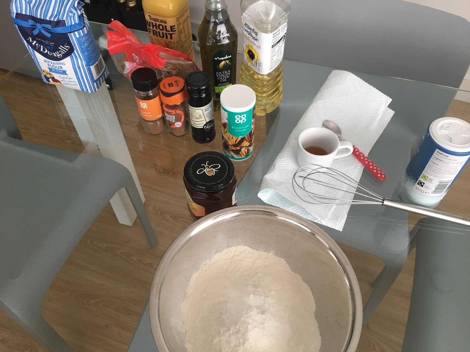 3) In un’altra ciotola mescolare la farina con il lievito (se vuoi puoi aggiungere anche 1/2 cucchiaino di bicarbonato).