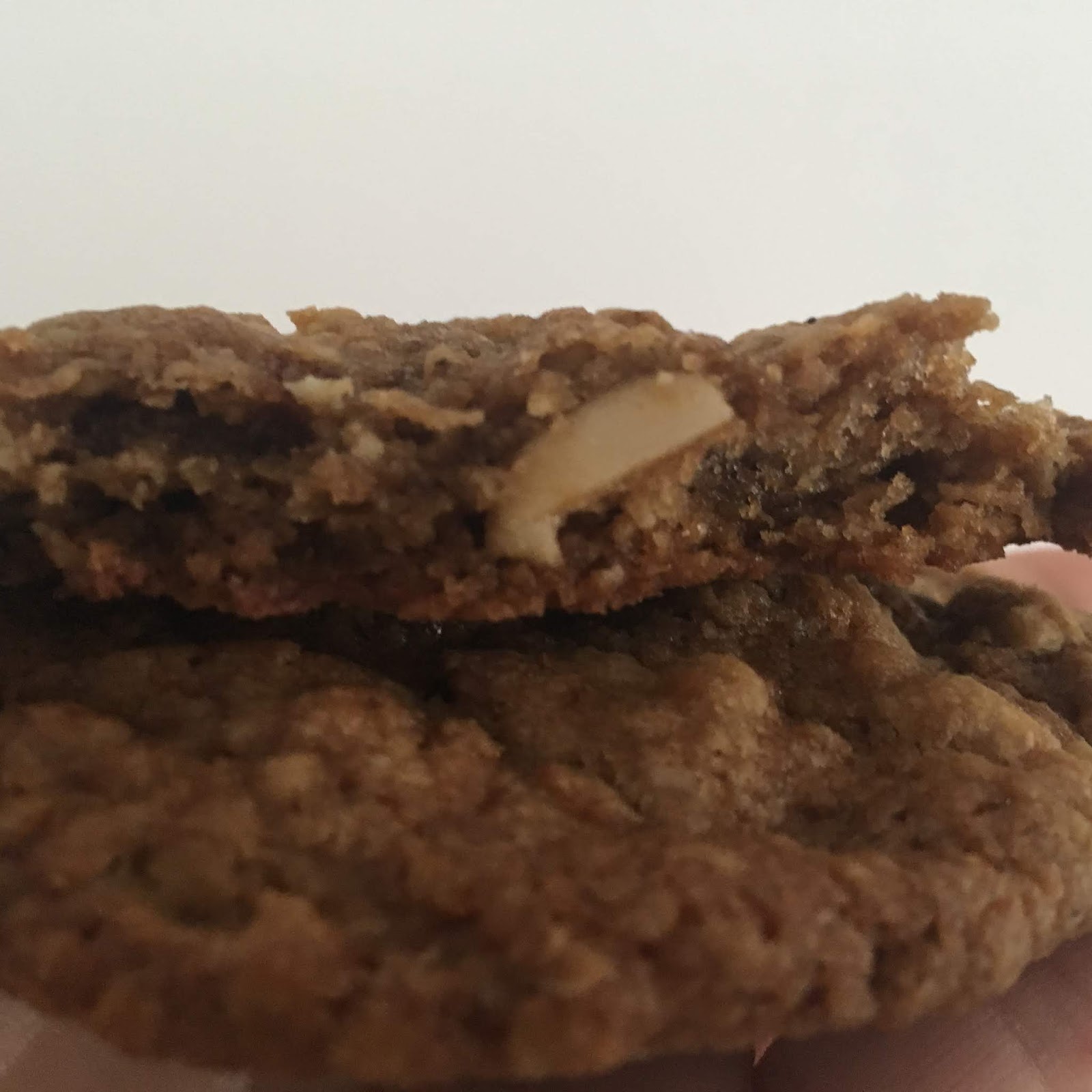 In una terrina mescolate l’avena, la farina di mandorle, la farina, il bicarbonato, il lievito e il sale.