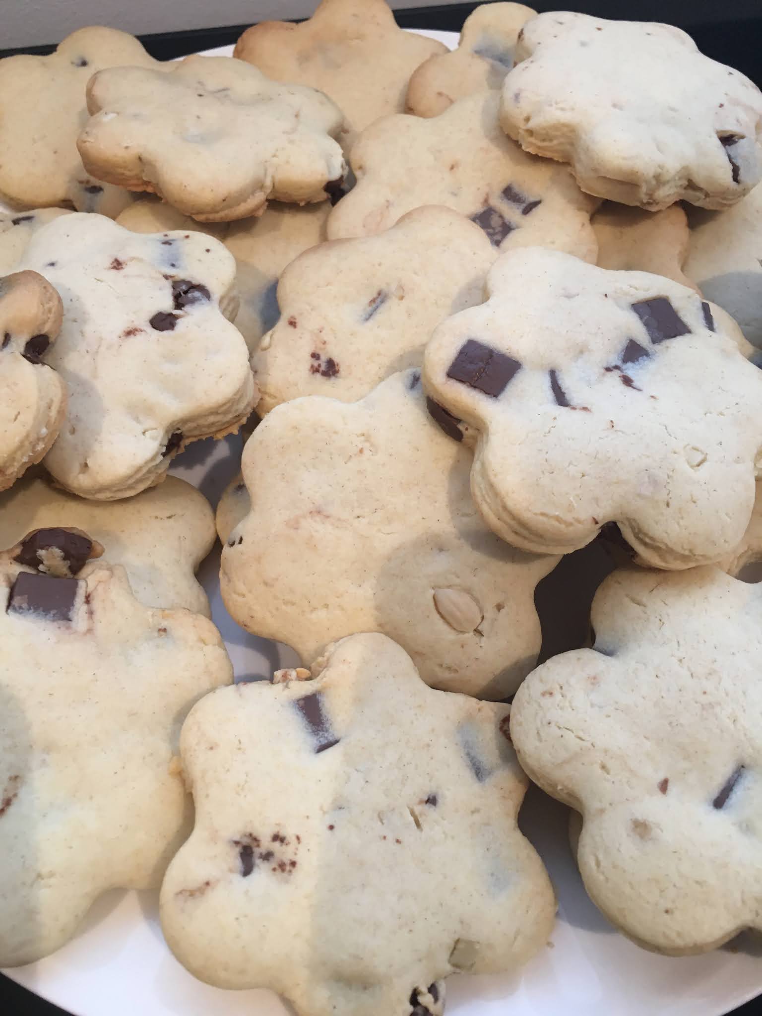 Lavorare lo zucchero e il burro con una frusta, creando una sorta di crema. Poi aggiungere l’uovo e farlo amalgamare bene. Quindi inserire la panna e la vaniglia sempre mescolando. Infine aggiungere le polveri, mescolare velocemente e poi aggiungere le gocce di cioccolato. Date un’altra mescolata veloce e poi traferire l’impasto in frigo per 30 minuti.