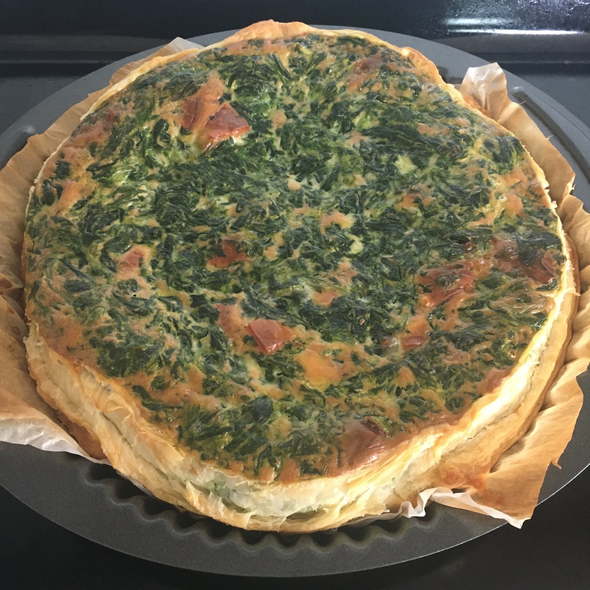 | Torta salata con spinaci, pancetta e formaggio |