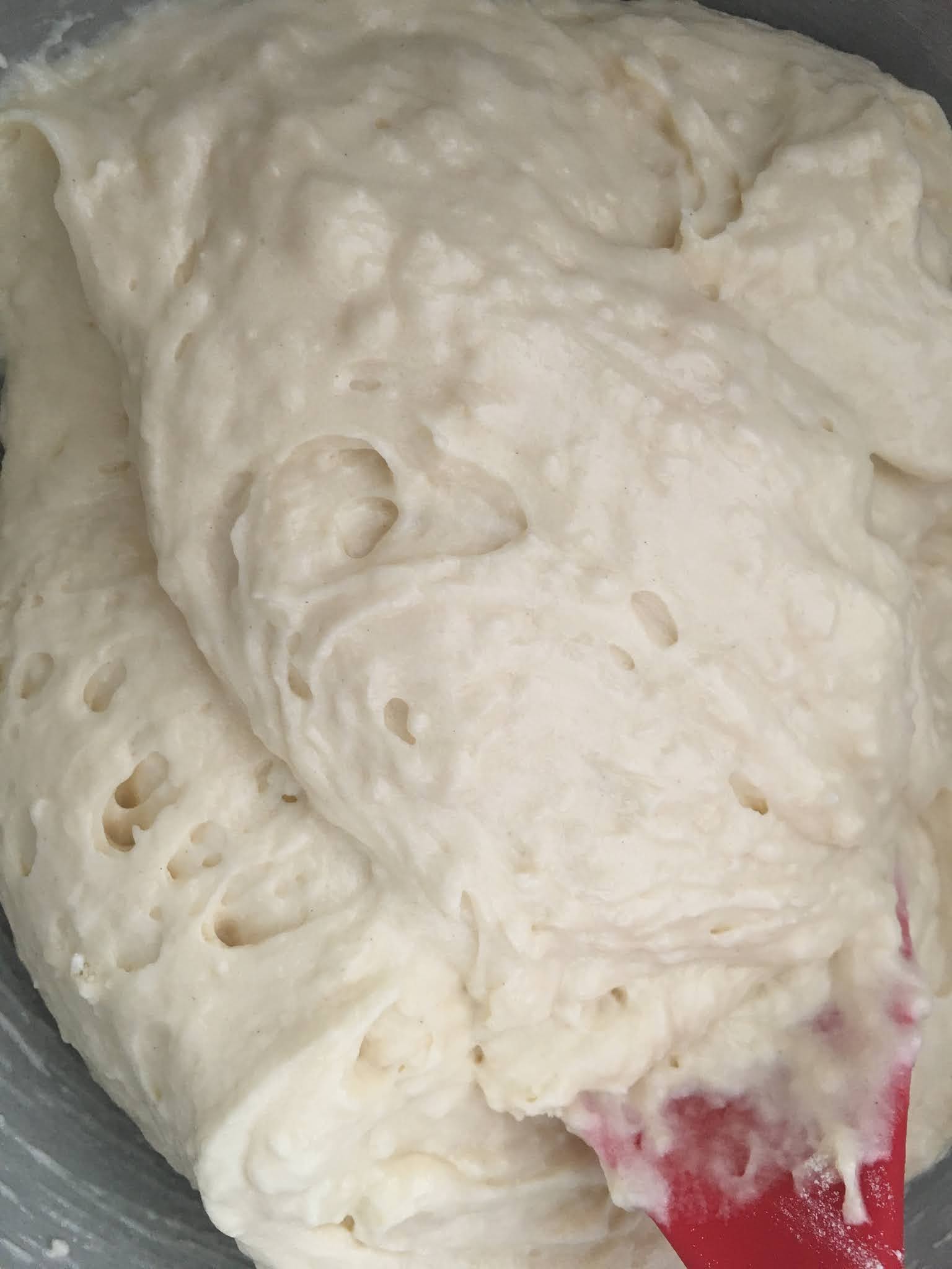 Poi aggiungere le uova, una alla volta. Inserire il succo di limone e lo yogurt greco. Creare un composto che, a causa del succo di limone, potrebbe non risultare omogeneo. Ma questo non è un problema!