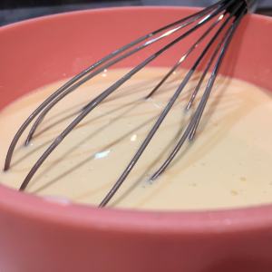 In un pentolino mettere la panna e il latte, mescolare e far riscaldare un po’ ma non portare a bollore.
