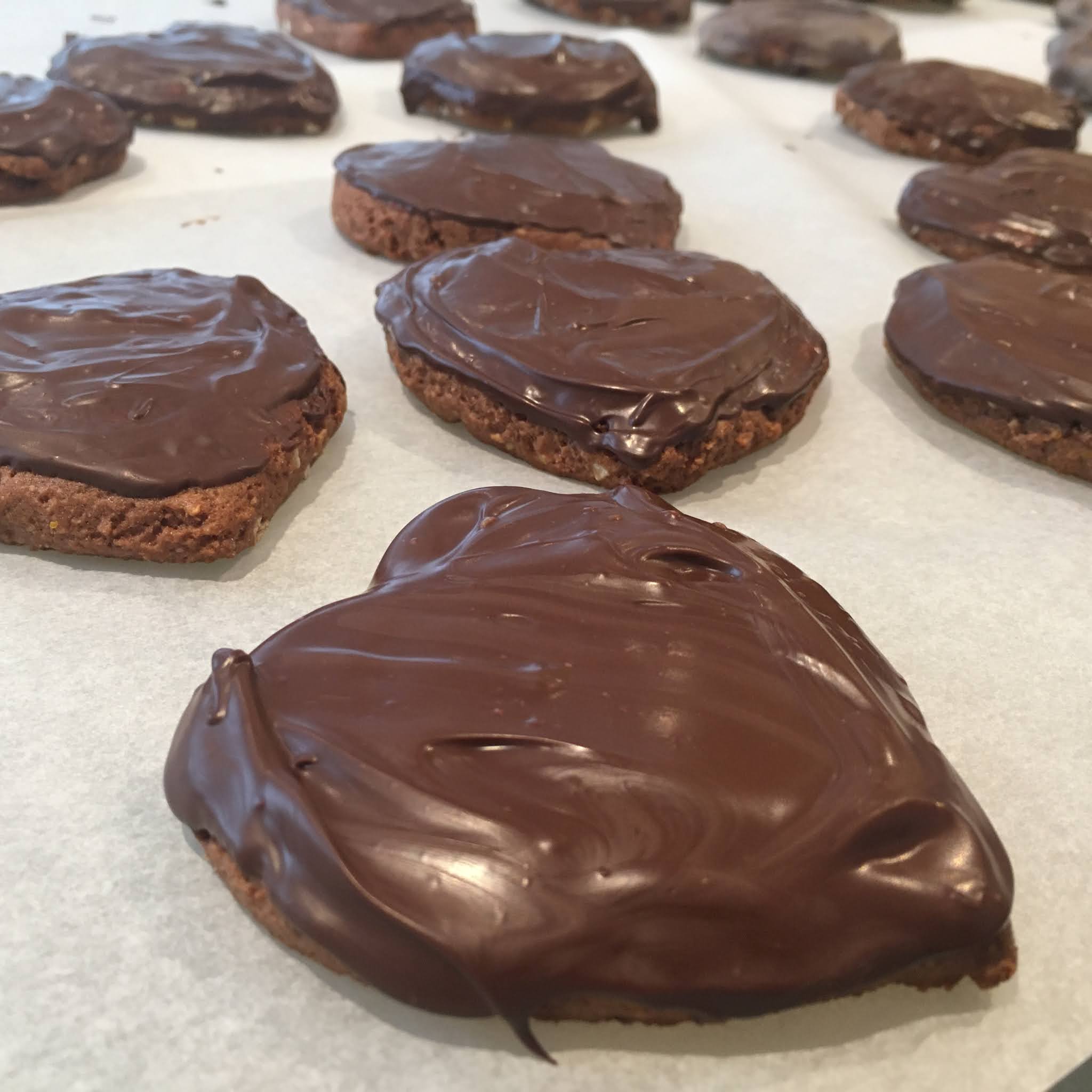 Per chi non conoscesse questa specialità, si tratta di biscotti morbidi che sanno di cacao, miele, spezie e sono glassati con uno spesso strato di cioccolato fondente (non dovete temperarlo perché si tratta di una glassa).