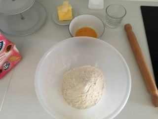 Tagliare il burro in piccoli pezzi e unirlo alla farina. Lavorare con i polpastrelli e creare un composto sabbioso.