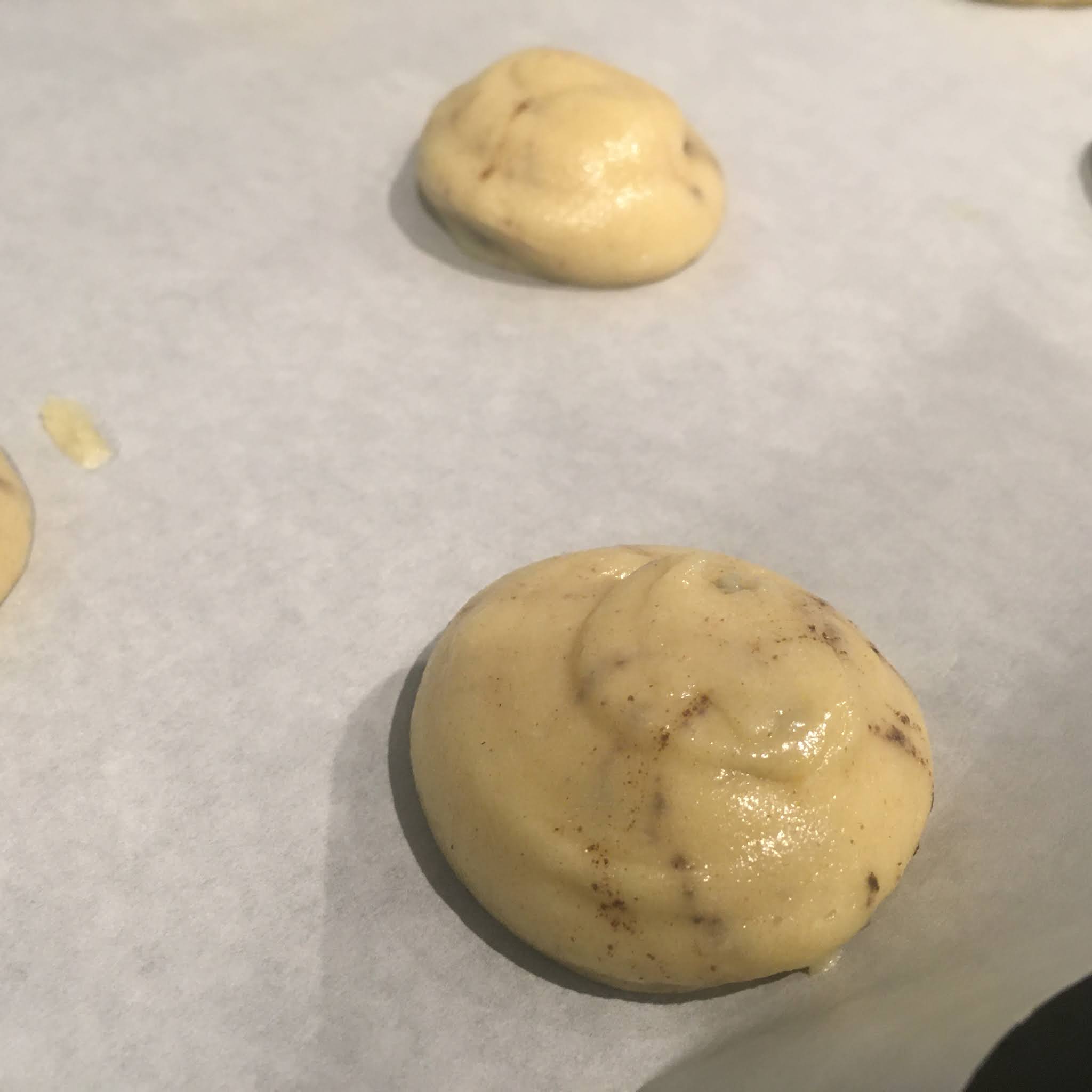 Disporre l’impasto a cucchiaiate (o usando una sacca da pasticceria con punta tonda) sulla teglia, dovreste realizzare 16-20 biscotti.