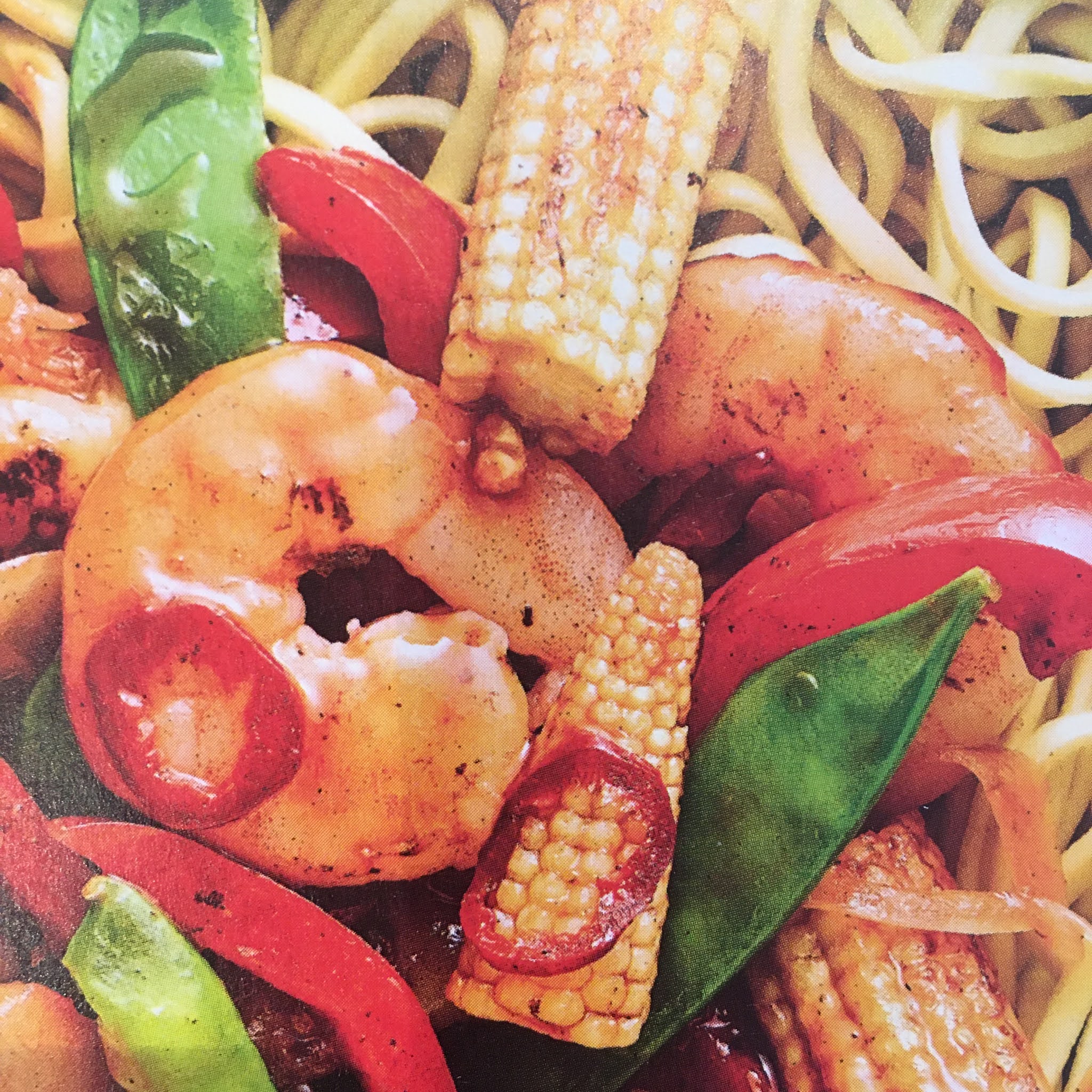 Versare un po’ di olio nel wok o nella padella antiaderente e cuocere il pollo 7 minuti. Poi aggiungere i vegetali, saltare su fuoco medio-alto i peperoni, le cipolle, i peperoncini, i baby corn e i fagiolini per circa 3-4 minuti.
