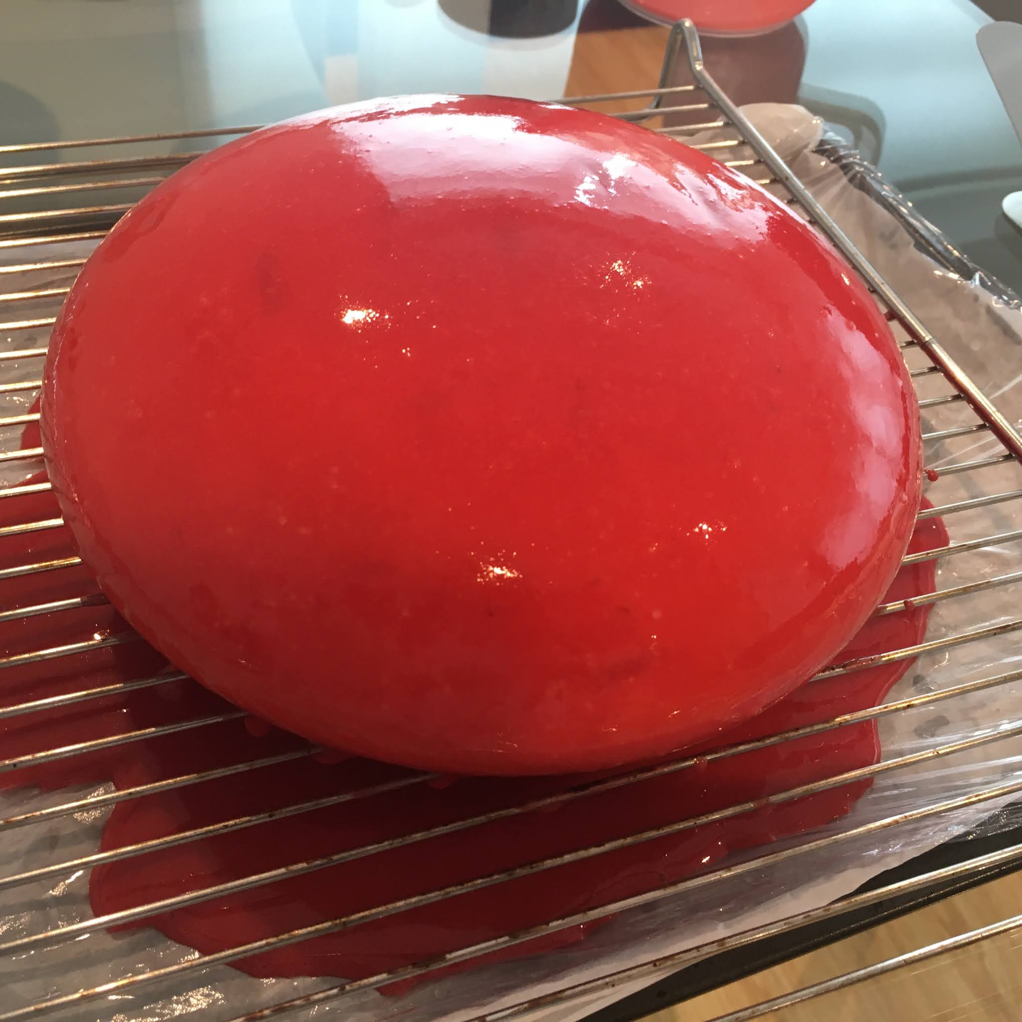 7 Il giorno dopo preparare la glassa a specchio e farla raffreddare fino a 30/32 gradi.