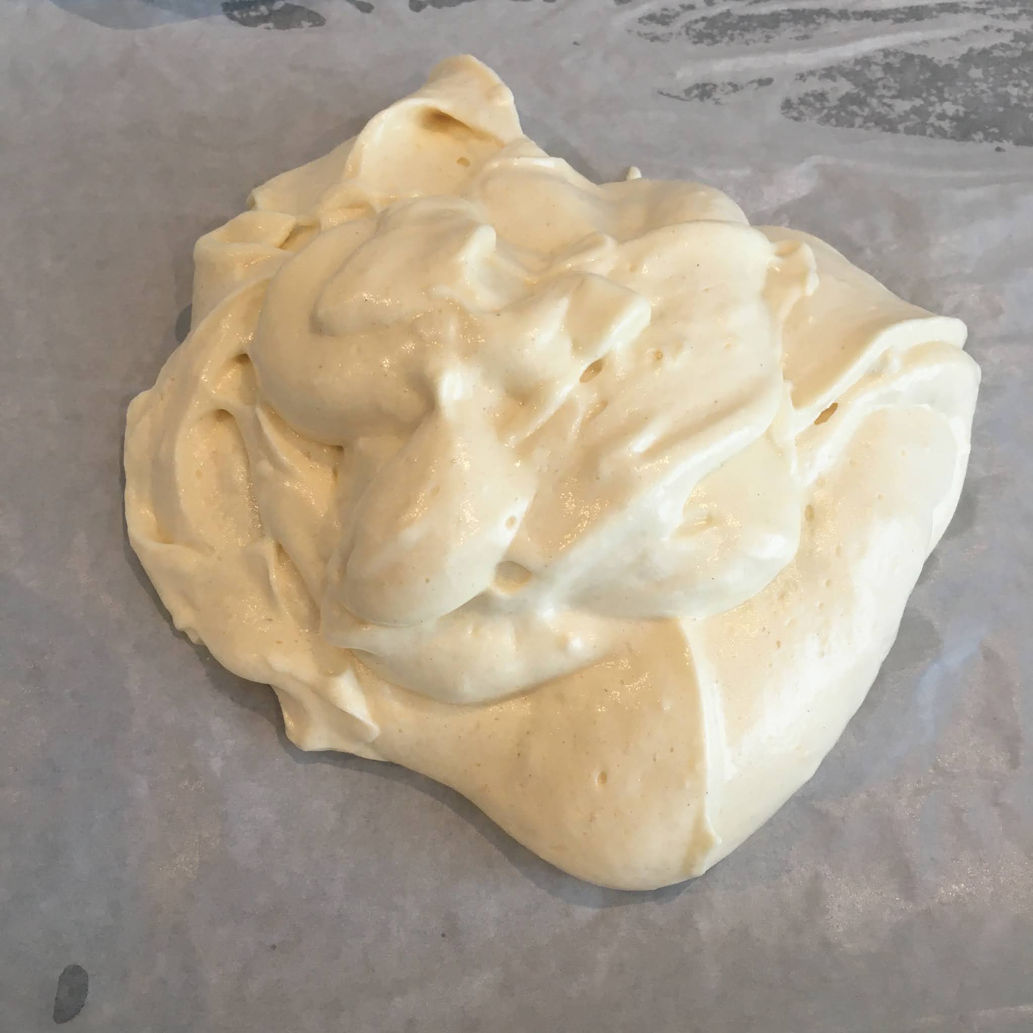 Montare, con la planetaria dotata di frusta, i bianchi a neve e inserire lo zucchero in 3 riprese. Una volta che avrete ottenuto una meringa ben ferma, aggiungete i tuorli e fate andare la macchina per venti secondi a velocità bassa quindi versare la farina e mescolate a mano con la spatola delicatamente, dal basso verso l’alto senza sgonfiare il composto.