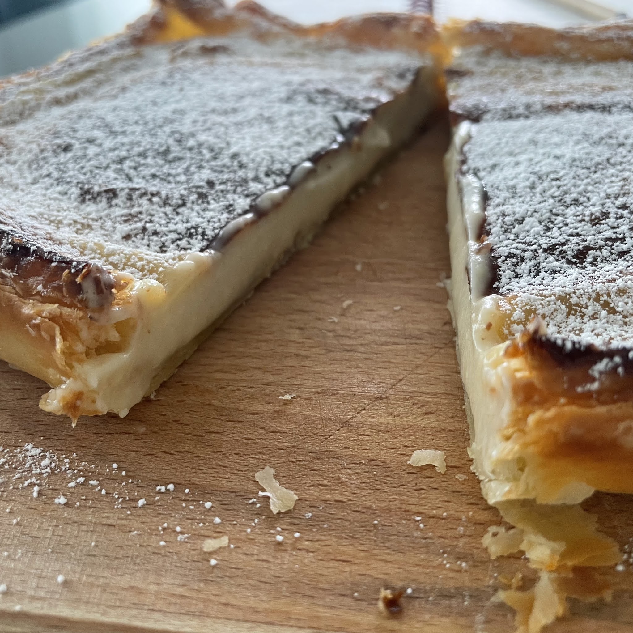 Il dolce si serve a temperatura ambiente, dopo qualche ora da quando lo avete sfornato. Ma se vi avanza lo potrete conservare per 3/4 giorni in frigo, sarà sempre ottimo ma purtroppo la consistenza croccantina della sfoglia si perderà.